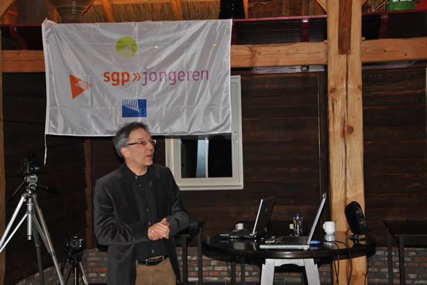 16-2-2013 In het SJOS gebouw hield de Staatkundig Gereformeerde Studievereniging Staphorst e.o. (SGS) vrijdagavond een mediatraining. Te gast was Jan van Klinken, oud-journalist en nu een bekend columnist. Doel van deze avond was het oefenen in het omgaan met diverse media. Voordat het interviewen begon, werd kort ingegaan op een